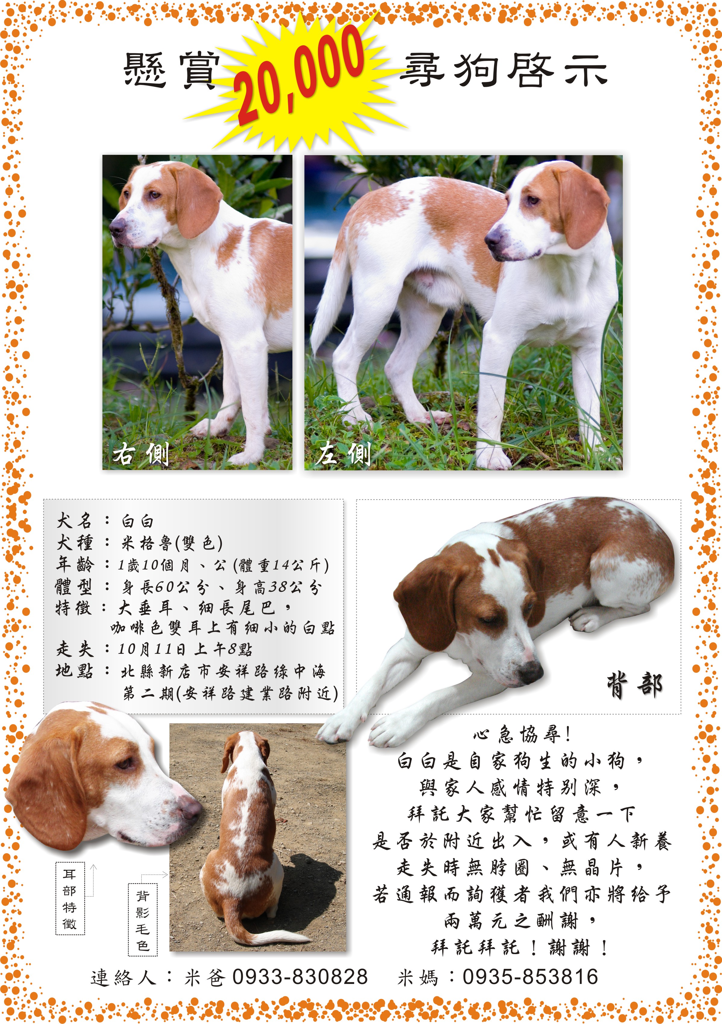最後這張是白白協尋啟示的圖片檔,請大家多多複製傳遞,但如果要列印的話,請按下面連結,